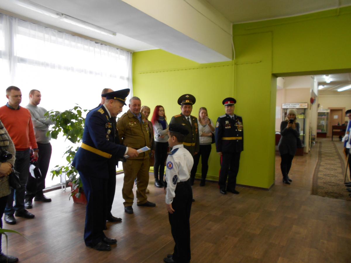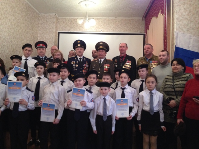 Линейка началась с торжественного построения воспитанников клуба, выноса знамени, гимна России, поздравления воспитанников с Днём защитника Отечества. С приветственными словами к воспитанникам обратились В.В. Макаров, А.Н. Рябов, С.С. Сидоров. Все мальчики клуба были награждены грамотами "Витязей Подмосковья". От "БОЕВОГО БРАТСТВА" грамотами были награждены Н.Н. Чикалов, А.Н. Рябов, С.С. Сидоров и С.А. Михайлов. После торжественного построения состоялся урок мужества на тему " Есть такая профессия - Родину защищать!".