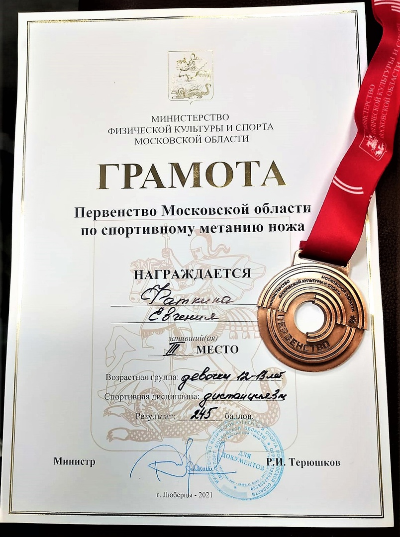 4 сентября состоялось первое выступление команды "Витязи Подмосковья" Московской областной федерации спортивного метания ножа Орехово-Зуевского г.о. на Первенстве и Чемпионате Московской области. Местное отделение федерации было сформировано три месяца назад. За этот период при поддержке Ассоциации "Армия и Бизнес", на территории СП "Атлант" была создана учебно-тренировочная база. Из кадетов подшефного класса имени Аркадия Каманина МОУ СОШ № 26 была сформирована и подготовлена первая команда по спортивному метанию ножа от Орехово-Зуевского г.о. Ежедневные усиленные тренировки под руководством инструкторов Журавлёва Е.В. и Васильева Н.А. дали свои результаты. Представительница нашей команды Фаткина Евгения заняла 3 место. Спасибо всем кто нам помогает в развитии нового вида спорта! Приглашаем всех желающих заниматься спортивным метанием ножа. Продолжаем своё развитие и движение ВПЕРЁД!