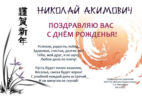 Поздравляем с Днем рождения ветерана движения "Витязи Подмосковья", руководителя СПК "Юнармеец" г. Орехово-Зуево, обладателя чёрных поясов по двум стилям каратэ Васильева Николая Акимовича!