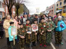 Воспитанники клуба несли портреты родственников, участвовавших в Великой Отечественной войне.